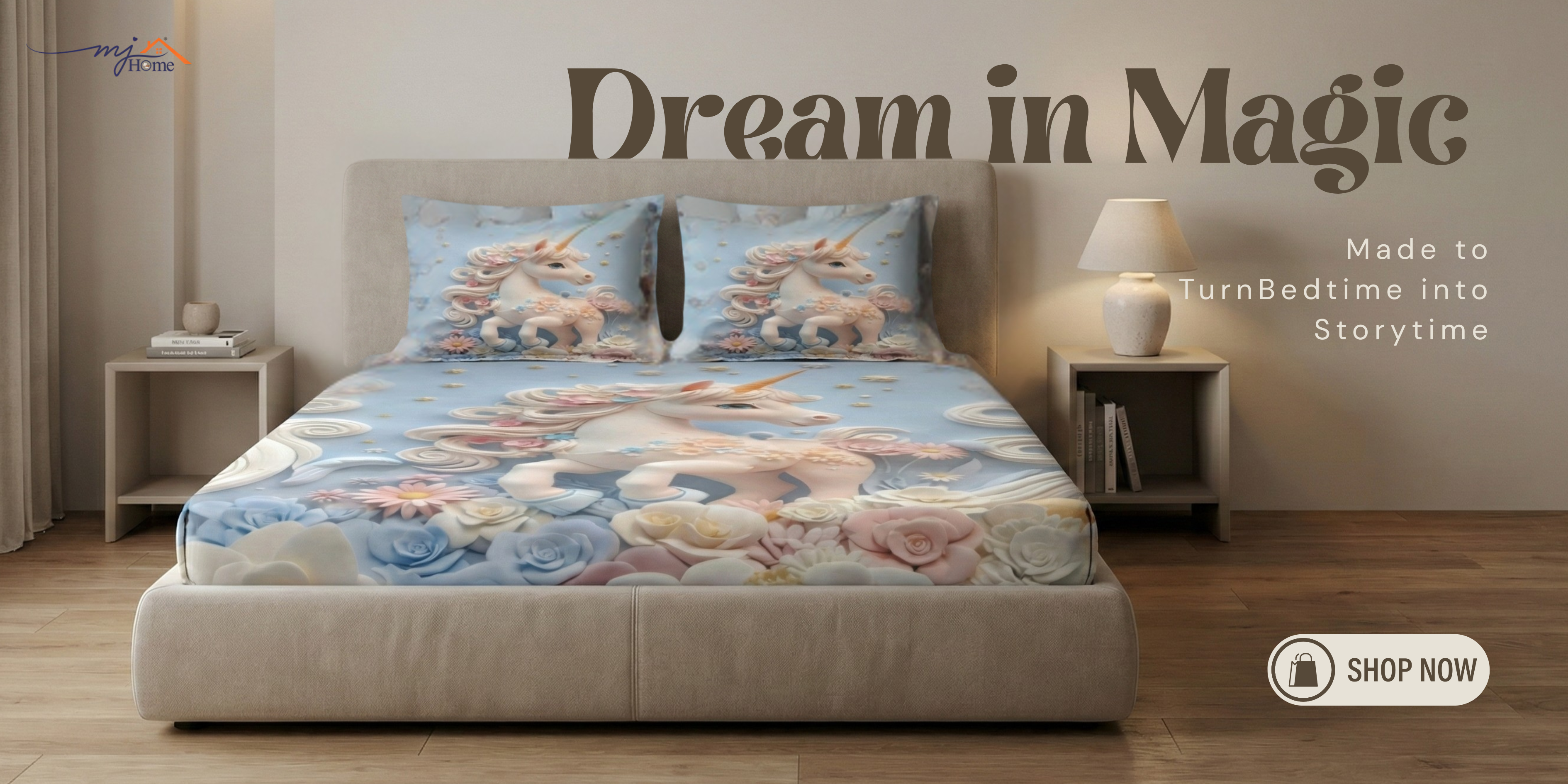 Discover art in every fold with the 7D Bedsheet Set. Featuring bold prints, versatile bed fittings and deep color depth, this collection gives your bedroom a modern, premium touch. Made from high-quality cotton for comfort and durability.